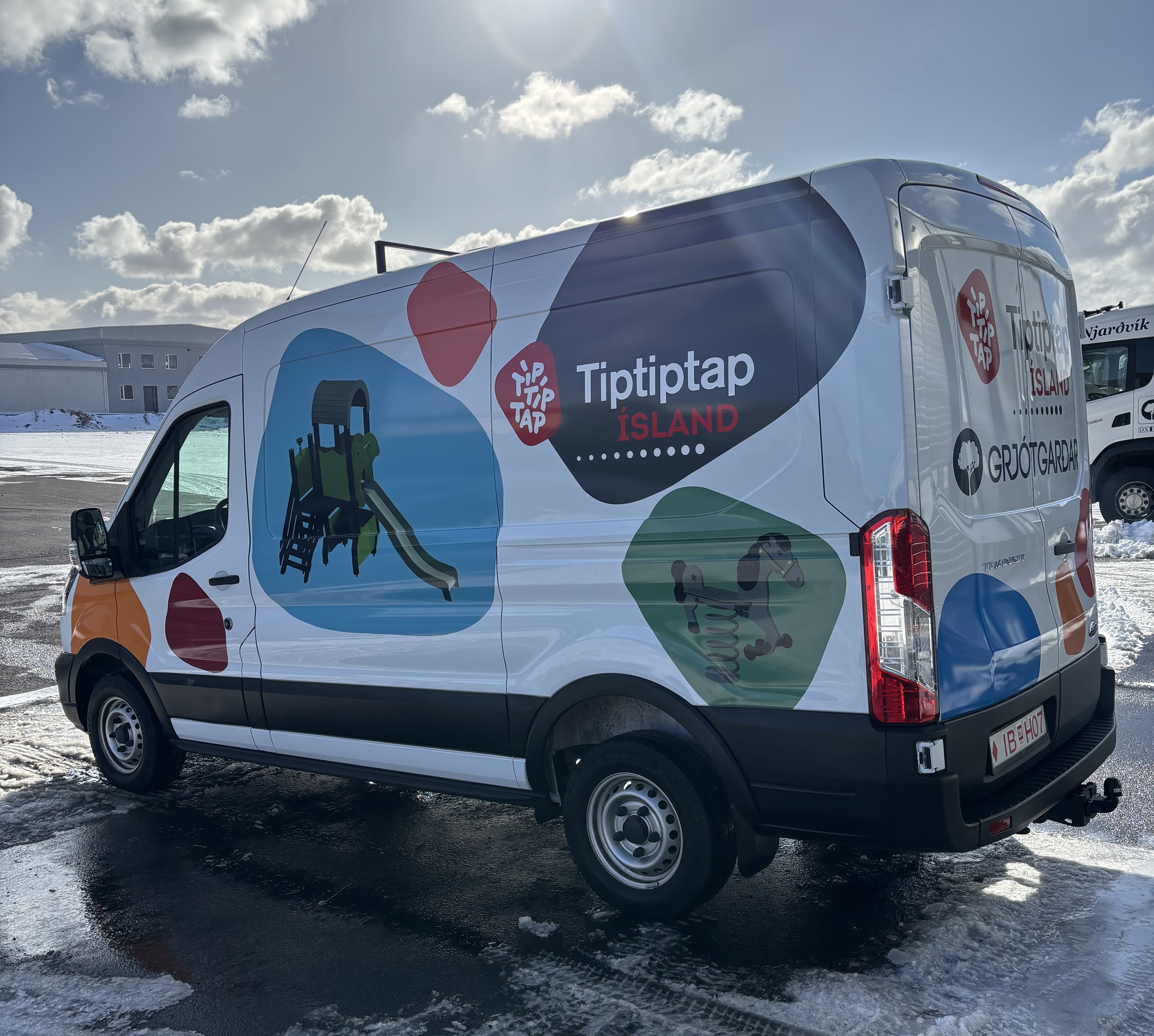 Frábær viðbót í flotann en þessi bifreið verður eingöngu notuð þegar kemur að uppsetningu og viðhald á tiptiptap leiktækjum.
