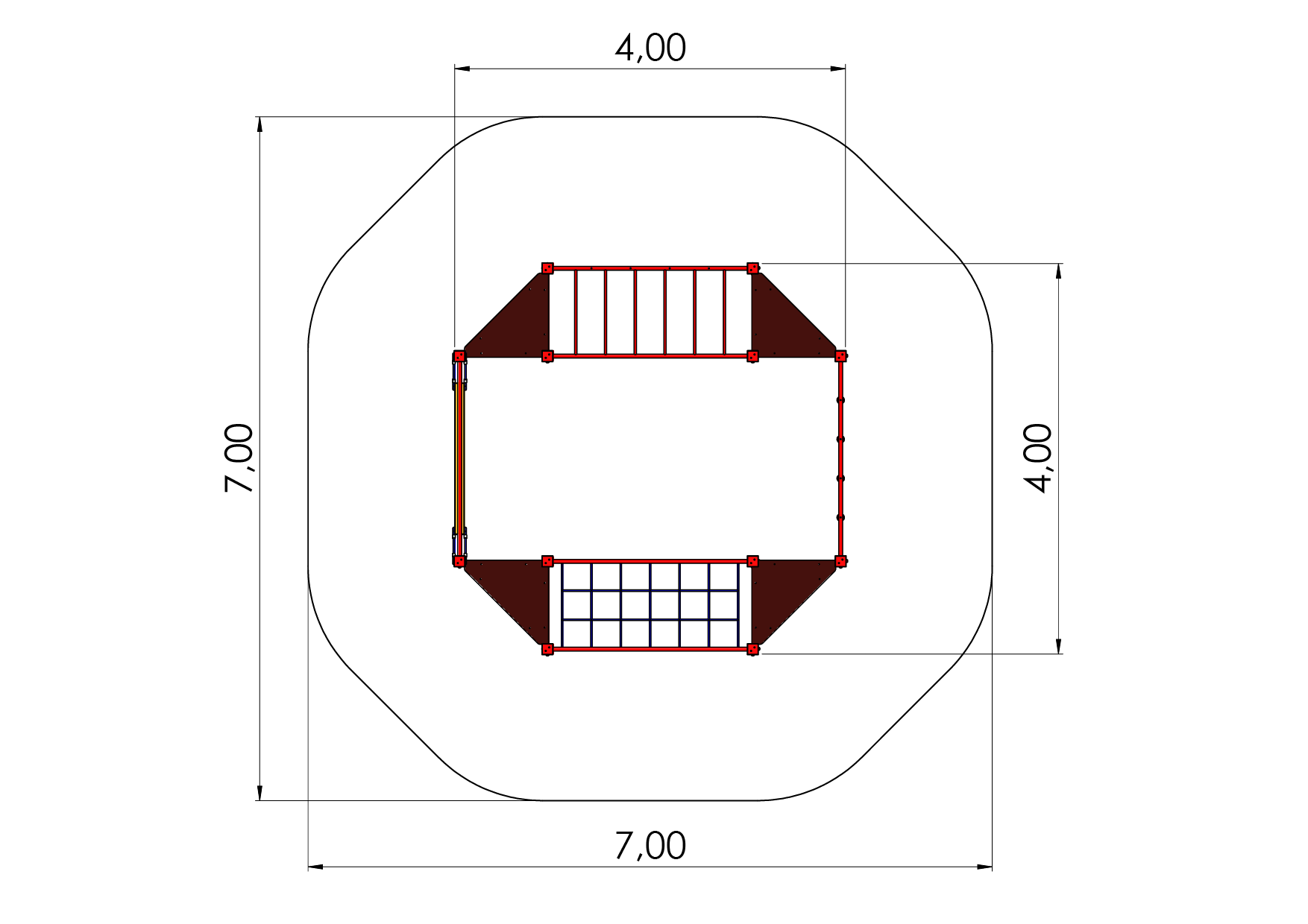 The compact balance track consists of four different climbing and balance elements which allow users to move from the starting point to the end point without having to set foot on the ground.