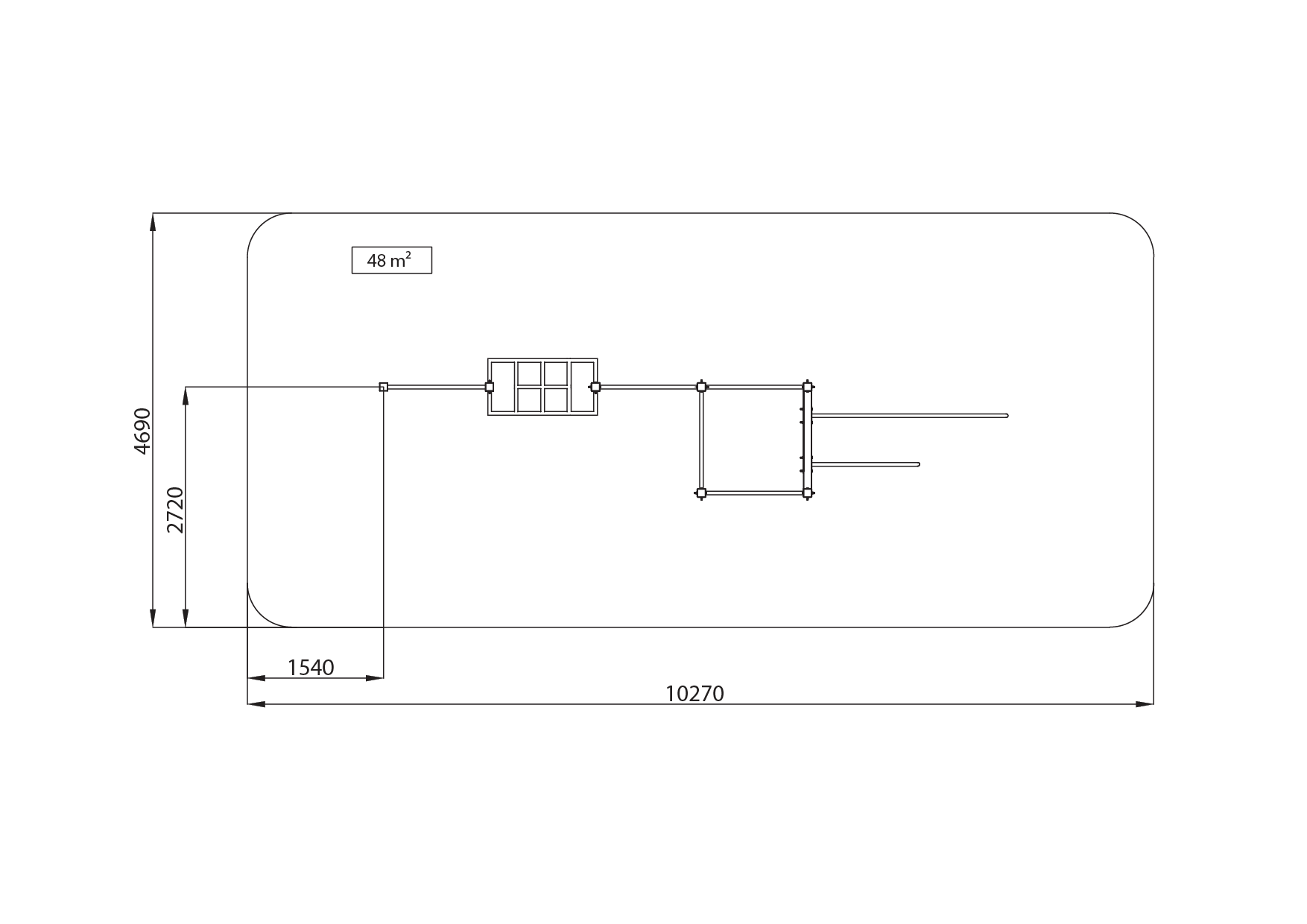 The product consists of: parallel bars, bars of different heights, a vertical and a horizontal ladder, a monkey bar. The construction of the device is made of vertical steel profiles measuring 80 x 80 mm with a wall thickness of 5 mm, and the training devices are attached to it with a bolt connection. Material: Powder-coated metal; hot-dip galvanised and powder-coated on request. The equipment is fixed to the ground by concreting, and an anchor bolt connection is available as a special solution. The set is TÜV certified according to the standard EN 16630: 2015.