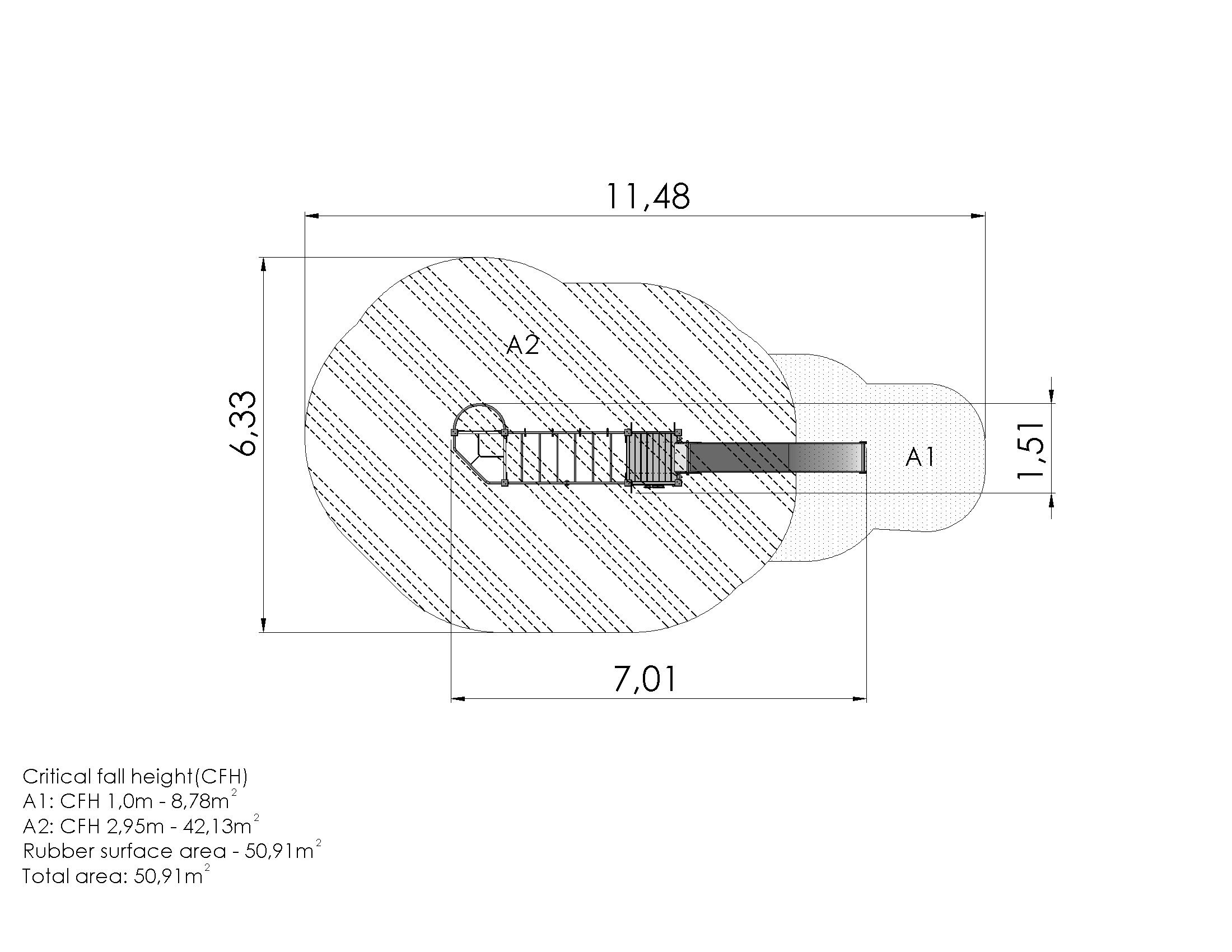 A play centre with two platforms (one of which is a net platform), a slide and a horizontal ladder. The platforms can be accessed via an assortment of ladders and a rock climbing wall. The horizontal ladder connecting the platforms offers a challenge to move between the two platforms without stepping down, or to climb up to it via a climbing rope. A slide and a firemans pole offer excellent sliding opportunities.