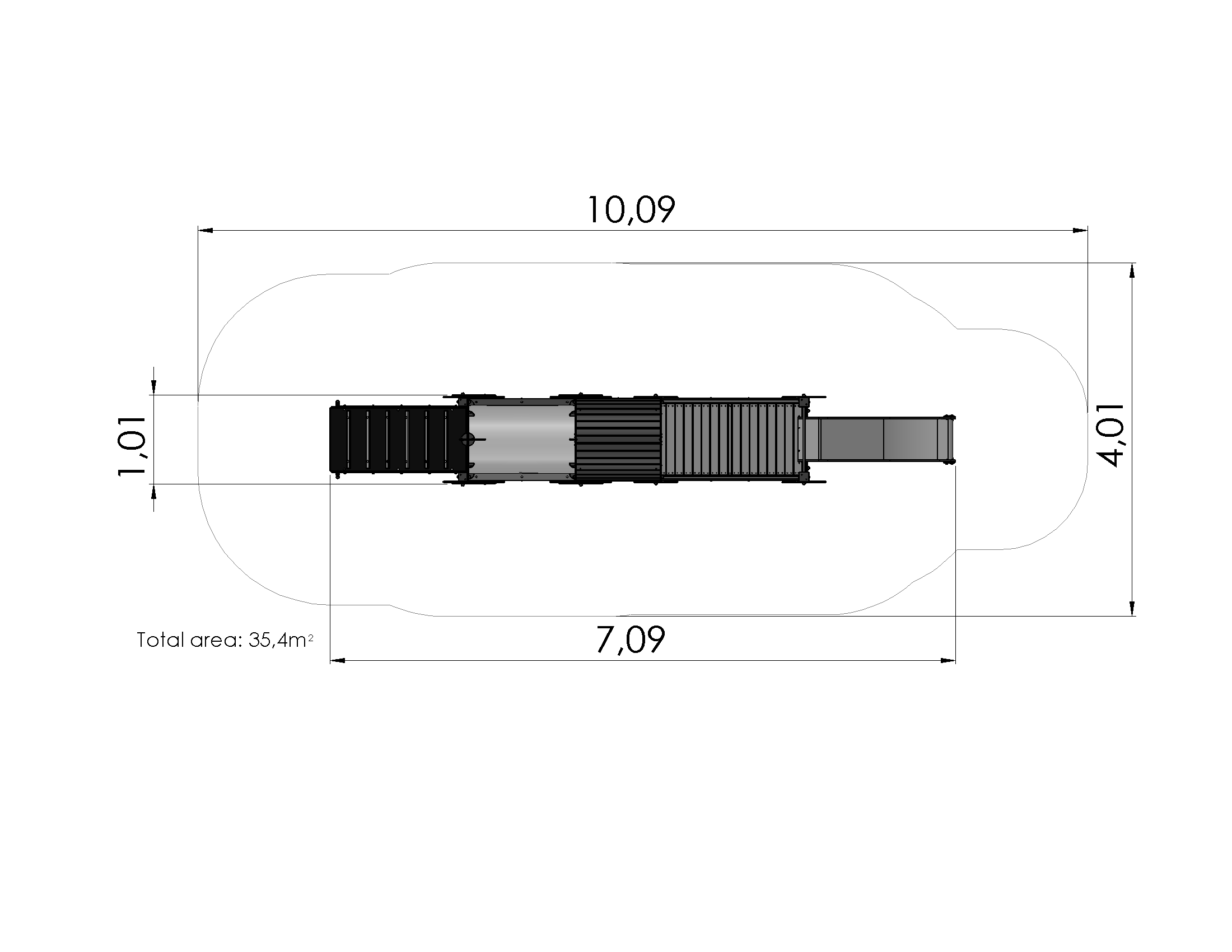 The playtrain with a slide is designed for small children. Children can access the 0.95 m platform with a slide by using a ramp with wooden steps, a crawl tunnel or the footholds on the climbing wall in the middle of the playtrain.