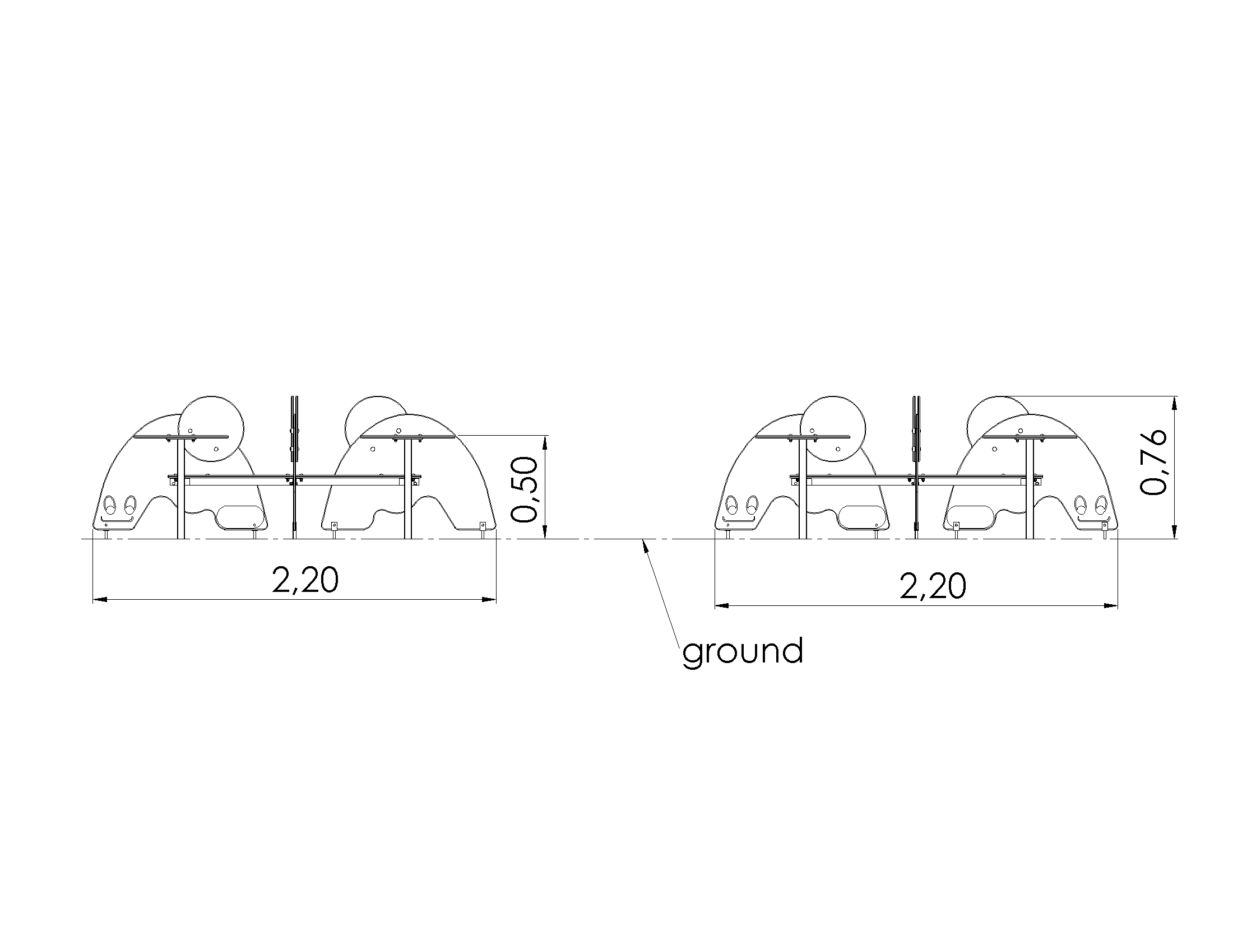 The set TIGU for a group of children has curved seats and four round tables. The set accommodates 8-12 children. The curved seat is divided into four sections, with partitions covered in fun images of the snail - in red, yellow and blue.